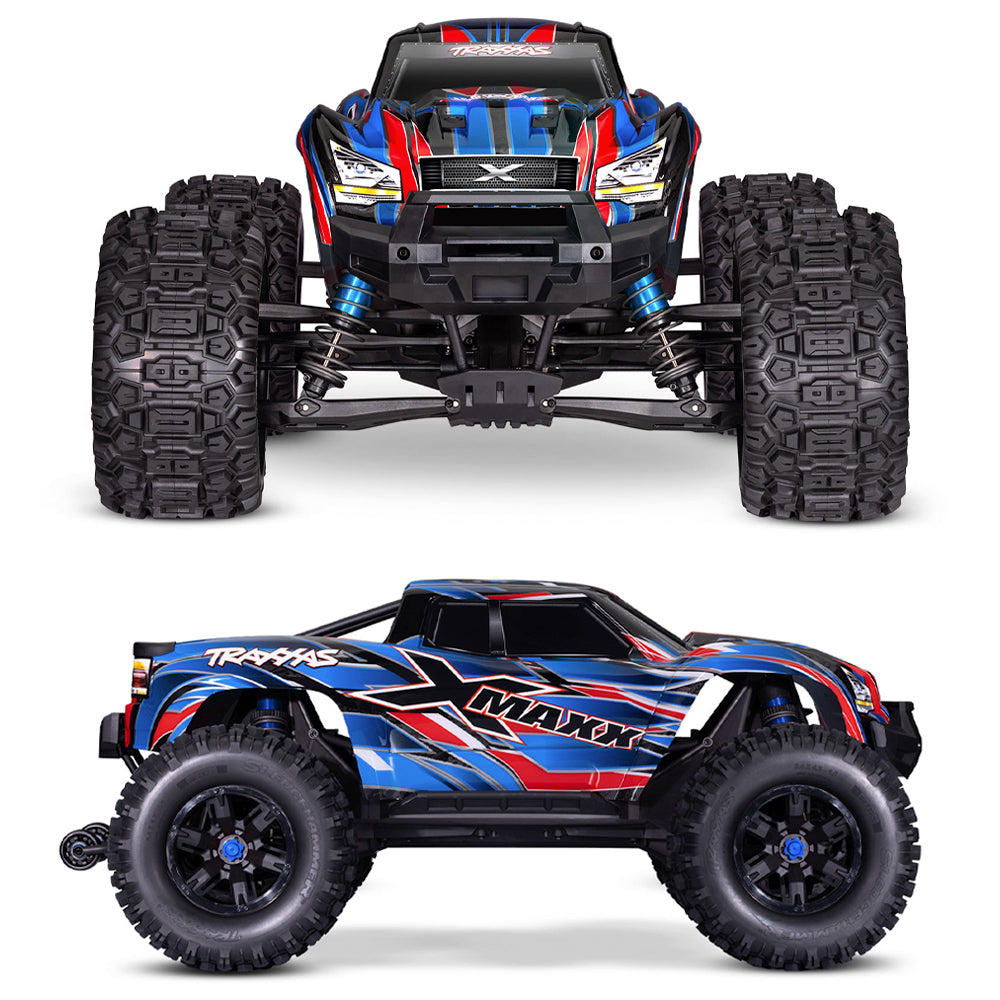 Unrelenting 4X4 power, mammoth size, and award-winning innovation make X-Maxx the ultimate monster truck. With 30+ volts of extreme 8s power, X-Maxx defies physics, unleashing jaw-dropping acceleration and 50+ mph speed. Belted Sledgehammer® tires conquer the most extreme terrain while providing unrivaled high-speed stability. Built to take brutal punishment in stride, X-Maxx is the definition of Traxxas Tough™.