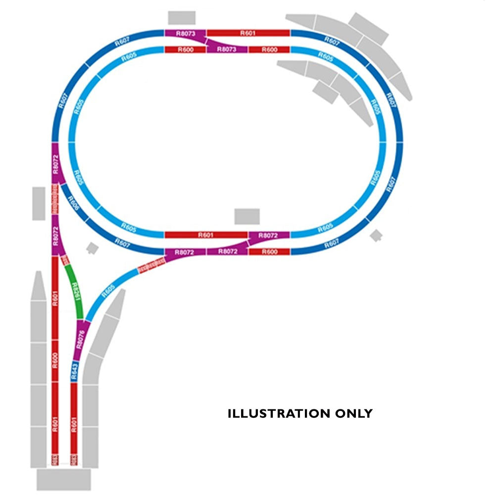 Note: The illustration image of the layout shows a representation of where you might place station & platform accessories with this model railway layout. You are of course free to place your layout however you wish. Please note that the grey areas denoting station platform accessories are not included in this pack and need to be purchased separately.