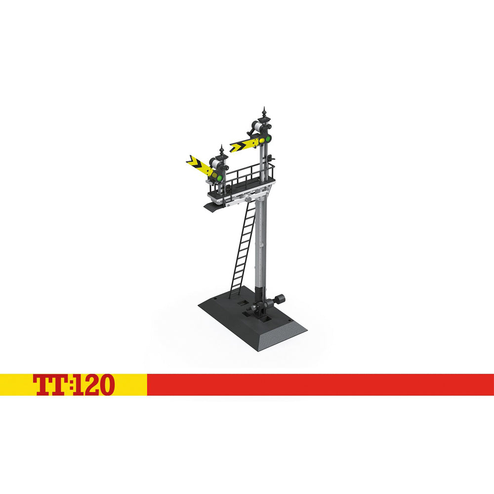 The Junction Distant Signal represents the type of signal used on the approach to points. The taller signal controls the main line whereas the yellow arms signify 'distant' or 'caution’ and are seen before signals with red arms, as per semaphore signals.