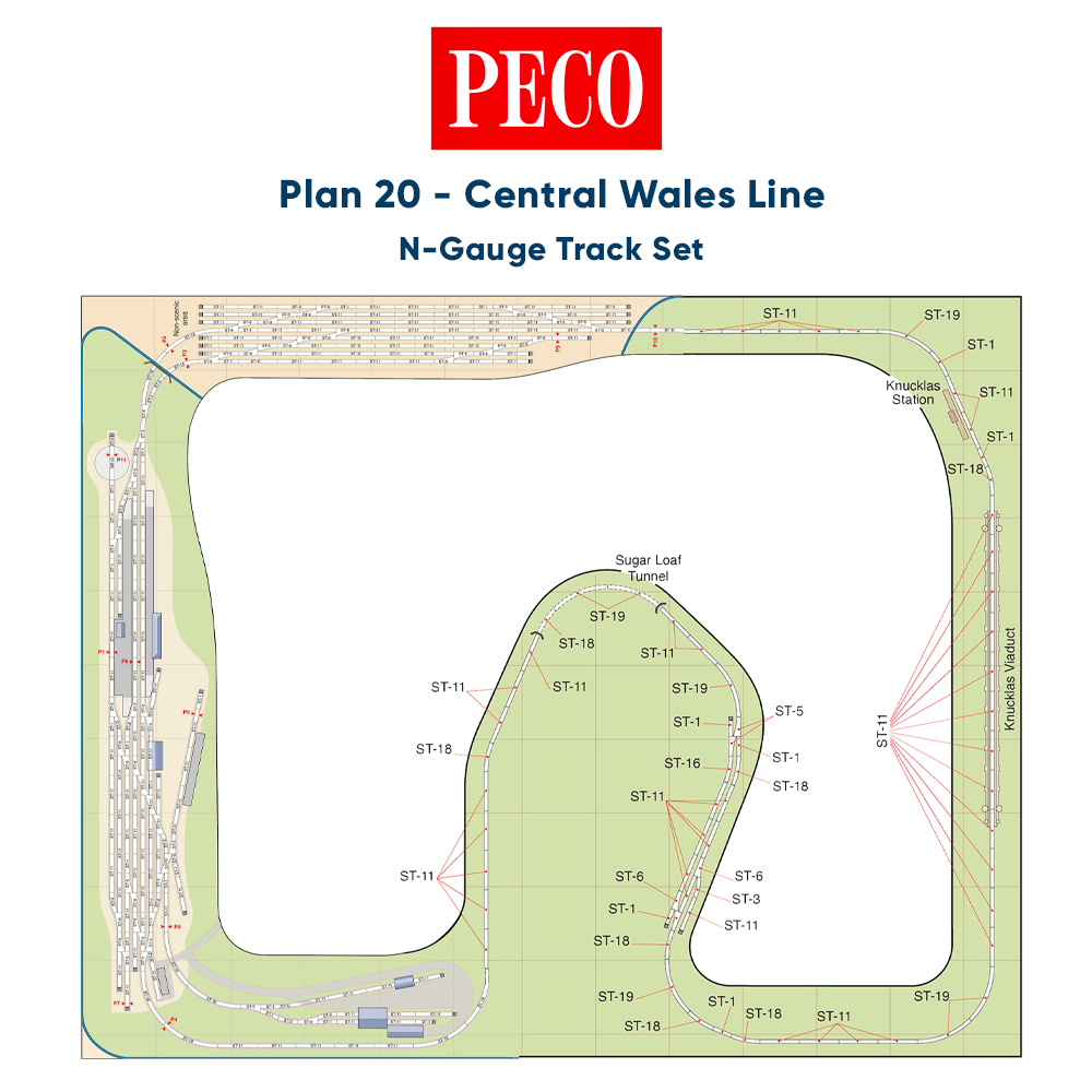 Our track packs are comprised purely of the track pieces, buffer stops (ST-8) and power connecting clips (ST-9) needed to complete the plans. Track fixings (pins, glue etc), buildings and scenery are not included, however we offer an incredible range (10,000s) of Model Railway products from most leading brands at competitive prices ensuring you can complete your incredible layout completely how you want it, to your spec. We also offer an unbeatable range of N-Gauge locos, coaches and wagons to compliment any of the different themes, eras and lines in any of the PECO track plans.