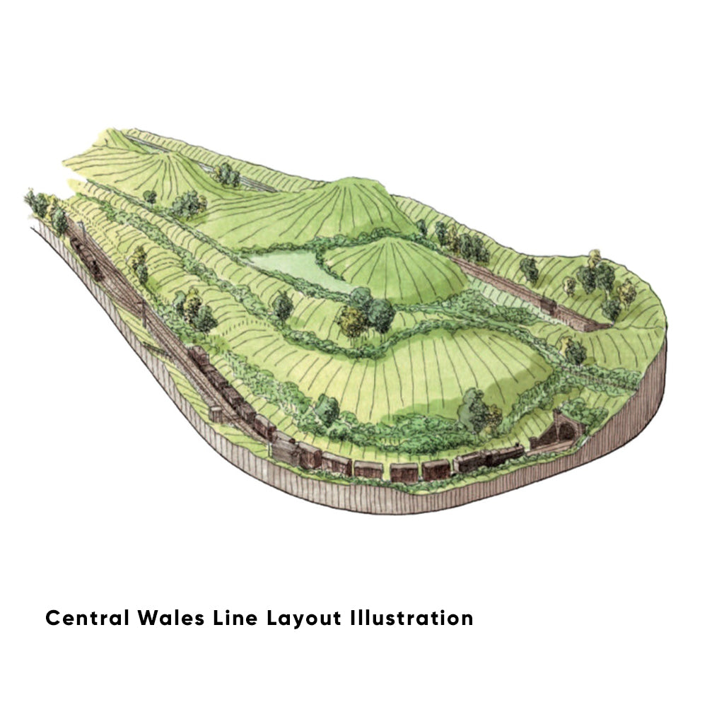 "A major scenic scheme covering a substantial area for N gauge. It focuses very much on trains in the landscape as they weave their way through a largely rural setting, broken only by the grandeur of the castellated Knucklas viaduct and the potentially busy Llandeilo station with its almost 'off stage' junction to Carmarthen. A significant amount of baseboard work is required, not only in respect of a dropped section for the viaduct, but also a gradient up to Sugar Loaf Tunnel and back might tempt those of you who are more ambitious. We have purposely kept the design single track on two adjacent sides to facilitate a lifting or duck-under section, giving access to either a sliding or outward opening doorway.