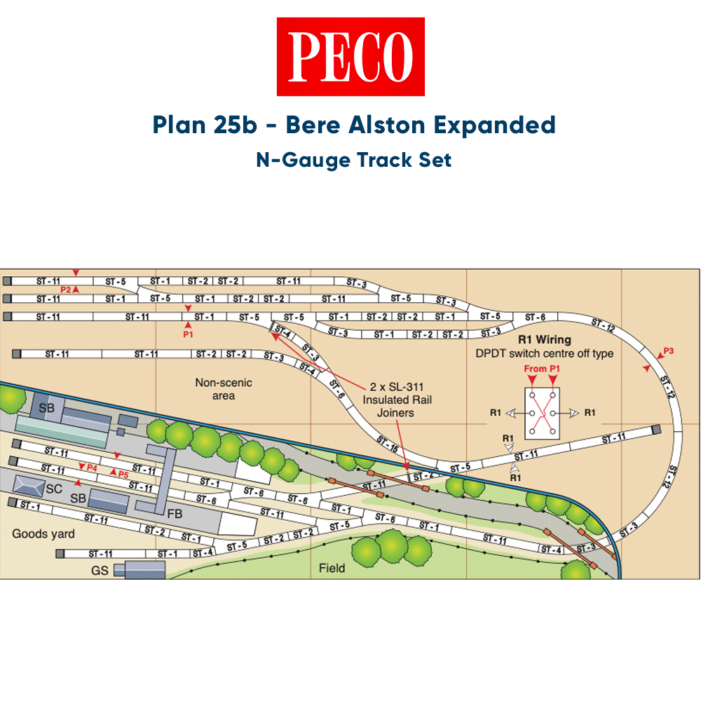 Our track packs are comprised purely of the track pieces, buffer stops (ST-8) and power connecting clips (ST-9) needed to complete the plans. Track fixings (pins, glue etc), buildings and scenery are not included, however we offer an incredible range (10,000s) of Model Railway products from most leading brands at competitive prices ensuring you can complete your incredible layout completely how you want it, to your spec. We also offer an unbeatable range of N-Gauge locos, coaches and wagons to compliment any of the different themes, eras and lines in any of the PECO track plans.