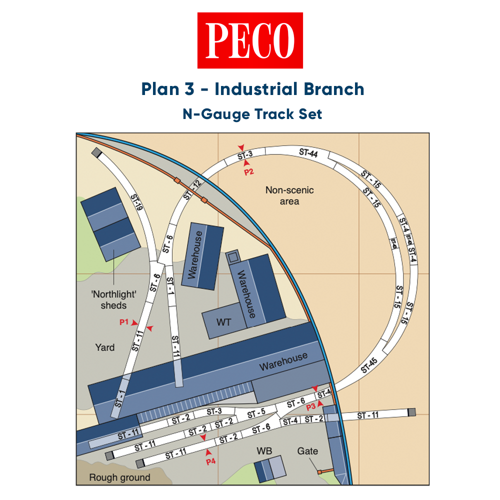 Our track packs are comprised purely of the track pieces, buffer stops (ST-8) and power connecting clips (ST-9) needed to complete the plans. Track fixings (pins, glue etc), buildings and scenery are not included, however we offer an incredible range (10,000s) of Model Railway products from most leading brands at competitive prices ensuring you can complete your incredible layout completely how you want it, to your spec. We also offer an unbeatable range of N-Gauge locos, coaches and wagons to compliment any of the different themes, eras and lines in any of the PECO track plans.