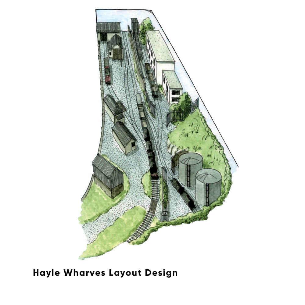 "Based on the last section of the long since closed short branch line from Hayle station to the Wharves, this proposed design amalgamates several prototype features set around the time of late steam and early diesel operation. A mixture of ex-GWR tank engines in BR black, maroon Warships, green Class 25s and Class 08 shunters could all be justifiably used, hauling traditional short wheelbase rolling stock. The design consists of a run- round loop and three sidings to shunt, with one, like the prototype, kicking back into the oil depot. This should make shunting that little bit more complicated and interesting! The end curve is sufficiently long to hold a train on this self-contained layout but some might wish to add a fiddle yard."