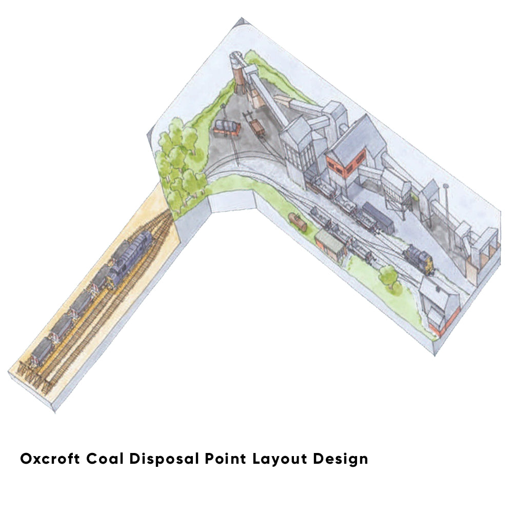 "The L-shape design of baseboard is ideal for representing the real railway. It suggests that trains go to and from a place, rather than going round in circles. Here the layout is divided into two key parts; the scenic coal disposal point and a set of non-scenic storage