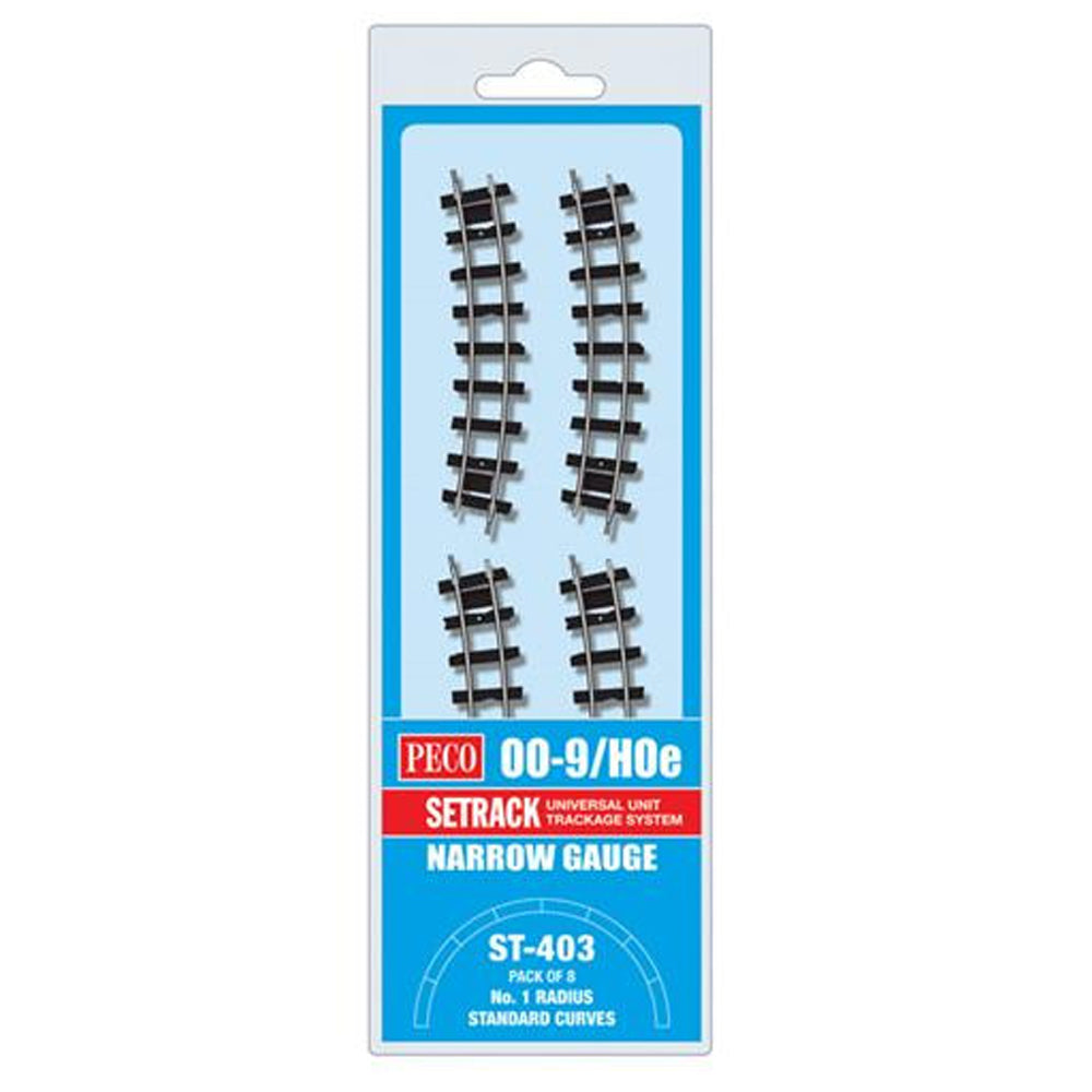 PECO ST-403 Setrack Standard Curve 1st Radius 8-Pack OO9 Gauge
