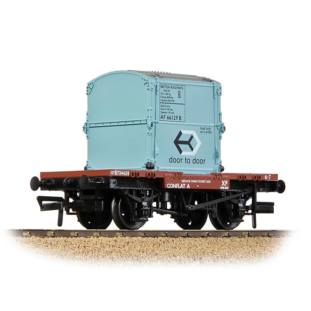 Bachmann Branchline 37-978A Conflat Wagon BR Bauxite Early With BR Ice Blue AF Container [WL]