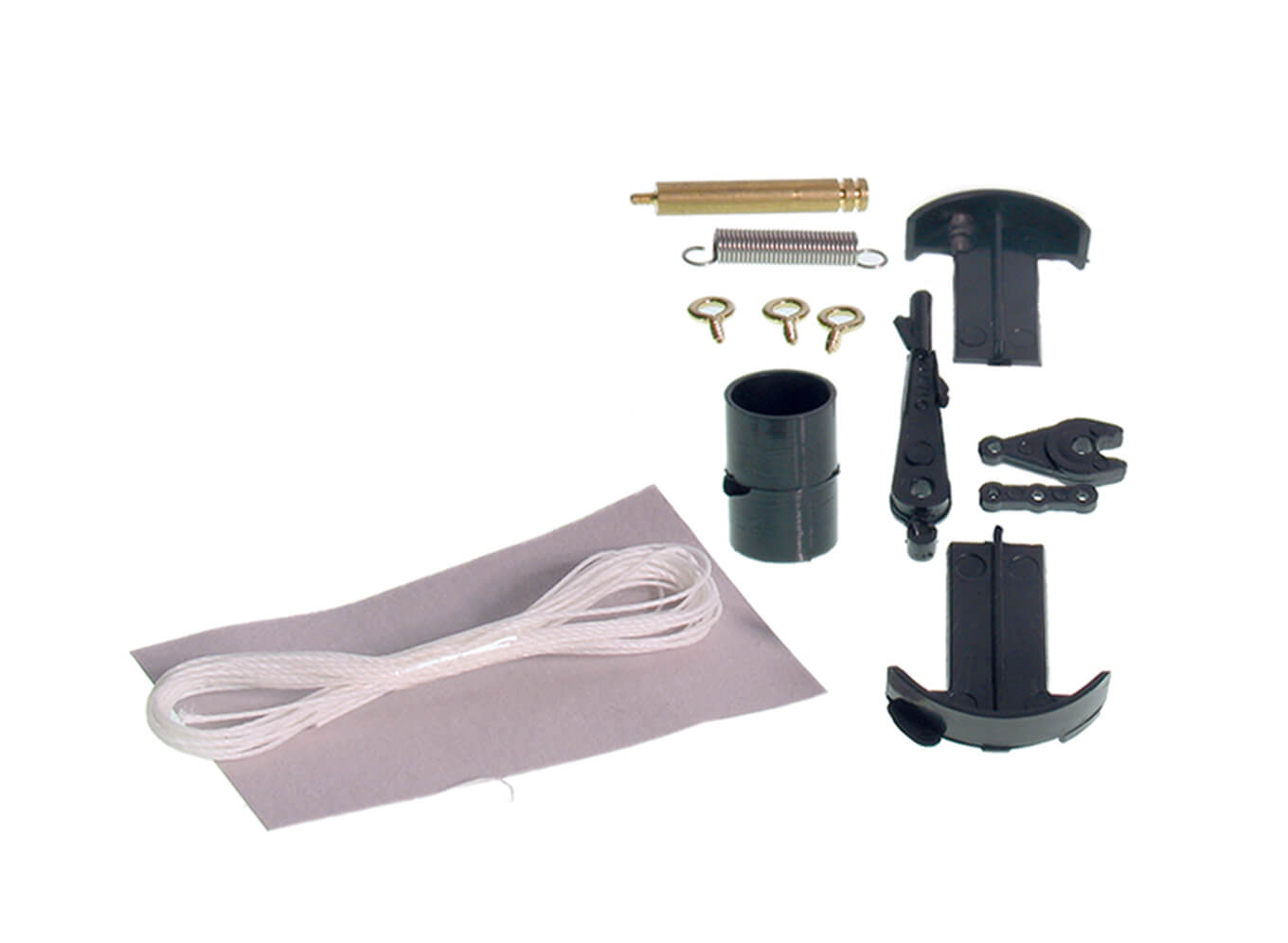 Includes a lever, cord, screw eyes and return spring - everything you need to operate one turnout.