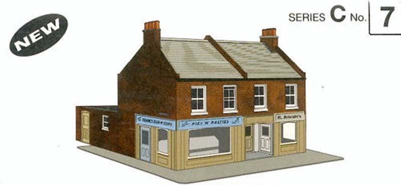 Red Brick Terrace Corner Shops Card Kit OO Gauge
