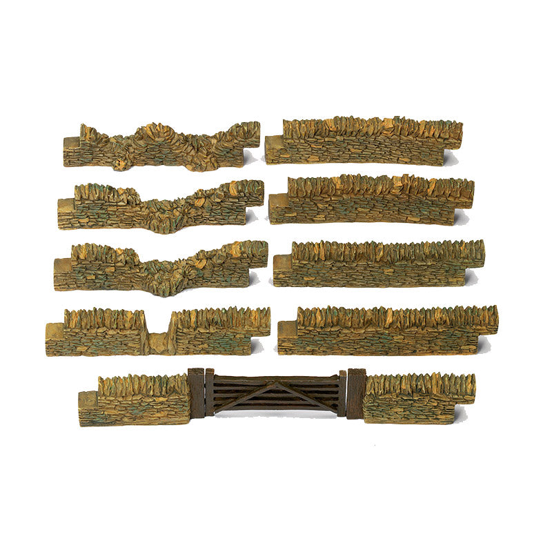 Part of the Hornby Skaledale range, this resin wall pack contains typical Cotswold stone walling sections both straight and curved. Also including gate.