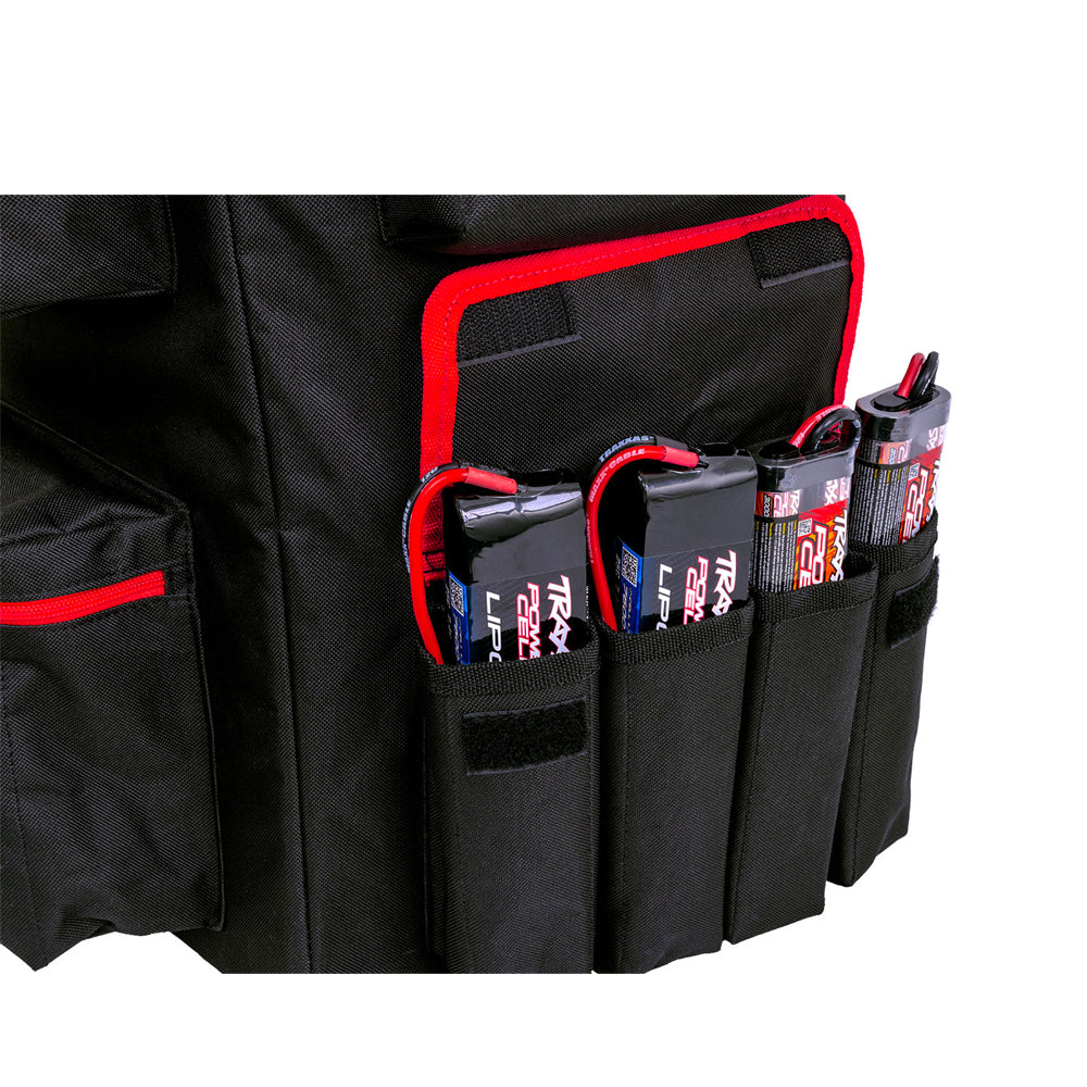 Based on the pro-quality bags the Traxxas team uses in the field, the new Traxxas backpack and duffel bag protect your gear and get you to your destination in style. Large padded main compartments accommodate a variety of Traxxas models, while special compartments hold a transmitter, tools, batteries, and other gear. Protect your valuable investment and travel like a pro with the Traxxas RC backpack and duffel bag.