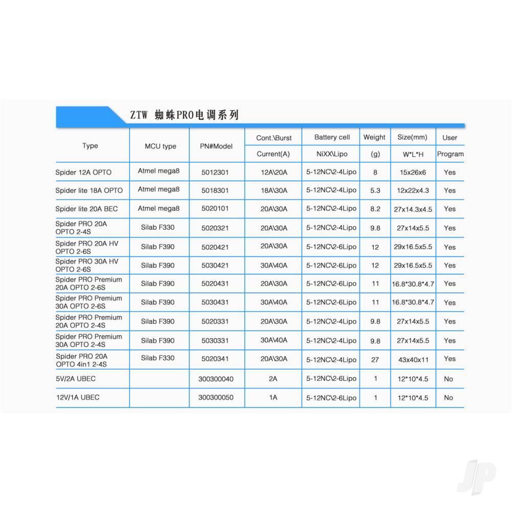 ZTW Spider 20A Opto Small ESC (2-6 Cells) 5020311