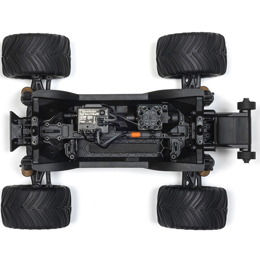 Underneath, the reinforced chassis and high-travel suspension is built to withstand every petrifying impact and keep going. This truck isn't just tough. It's smart. The deep tub chassis keeps out dirt and debris so you can bash harder without clogging the works. The monster truck stance and elevated centre of gravity allow it to conquer all obstacles in its way. Chaos, indoors or out, is where the GORGON GROM rules.