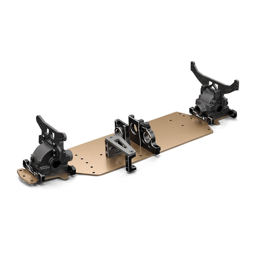 • Robust engineering throughout: 2.5mm aluminium chassis plate, CNC-machined alloy components, carbon fibre shock towers and a 3-differential metal-gear transmission for maximum drivetrain stability.