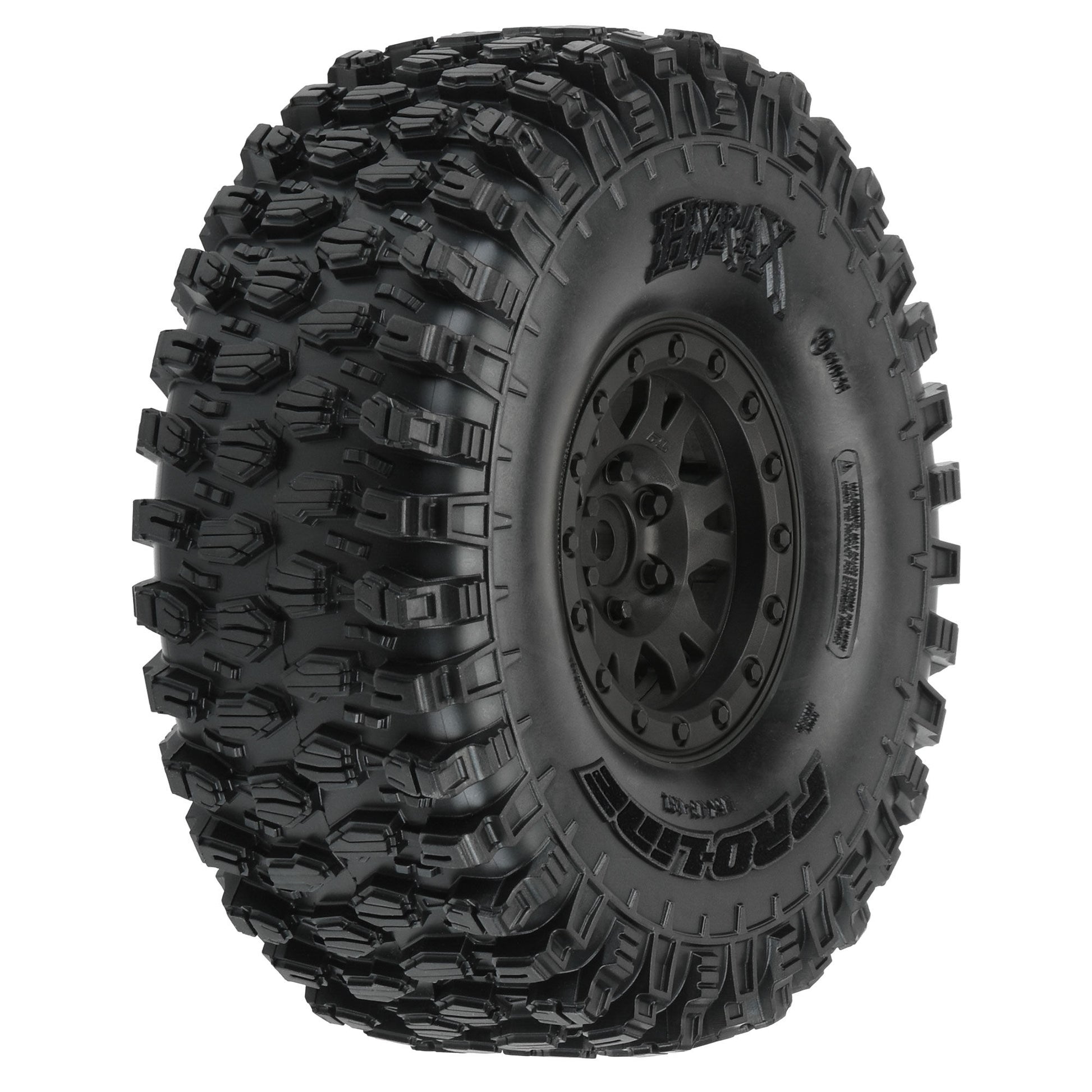 PRO1012810 | Hyrax 1.9" G8 Tires Mounted on Impulse Black Internal Bead-Loc 12mm Wheels (2) for Rock Crawler Front or Rear