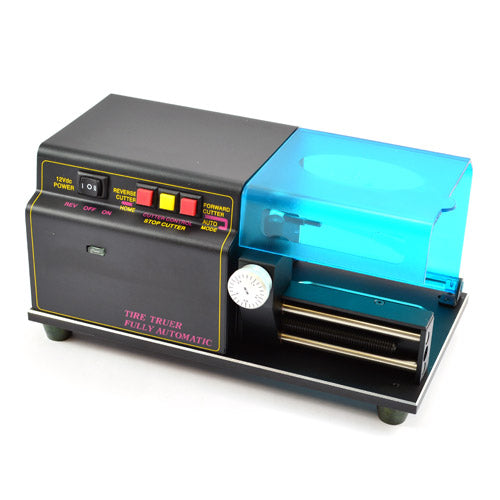 Essential piece of kit for any serious on road racer, this fully automatic truer can handle anything from 1:12 wheels and tyres through to 1:8 size. a cutting blade is pre-installed, all you have to do is set the cutter and press. Features protective cover, installed electronics and motor, regulated speed and 12v cable. (Requires 12v power source)
