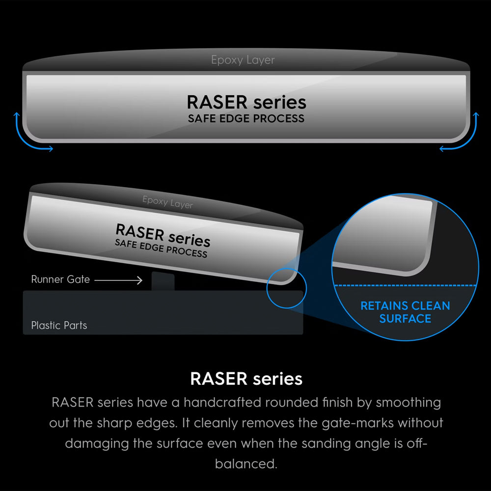 RASER PLUS made of tempered glass will not break during normal use. However, it may be damaged by external impact or falling. Always store in the storage case when not in use.