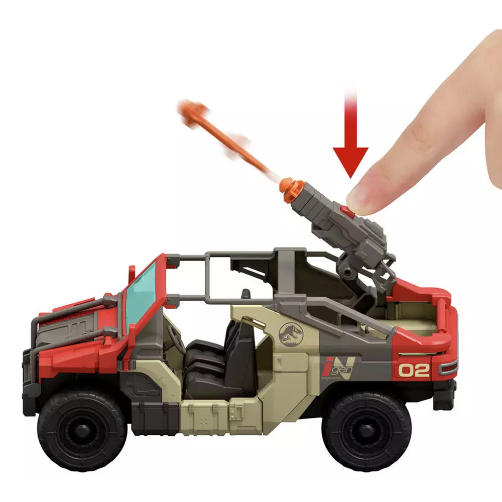Adventure-ready! Relive the action and thrills of Jurassic World Rebirth with this Launch 'N Battle vehicle that comes with a detachable launcher with 2 different projectiles a dart and a capture net!