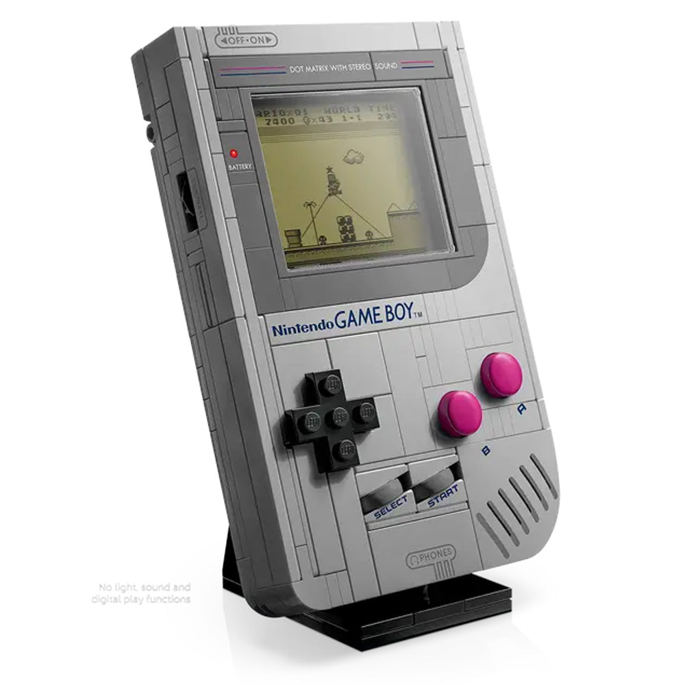 Authentic details – Recreate the +Control Pad, A and B Buttons, SELECT and START, the contrast adjustment and volume dial and the Game Pak slot, and display your brick-built Game Boy™ on the stand