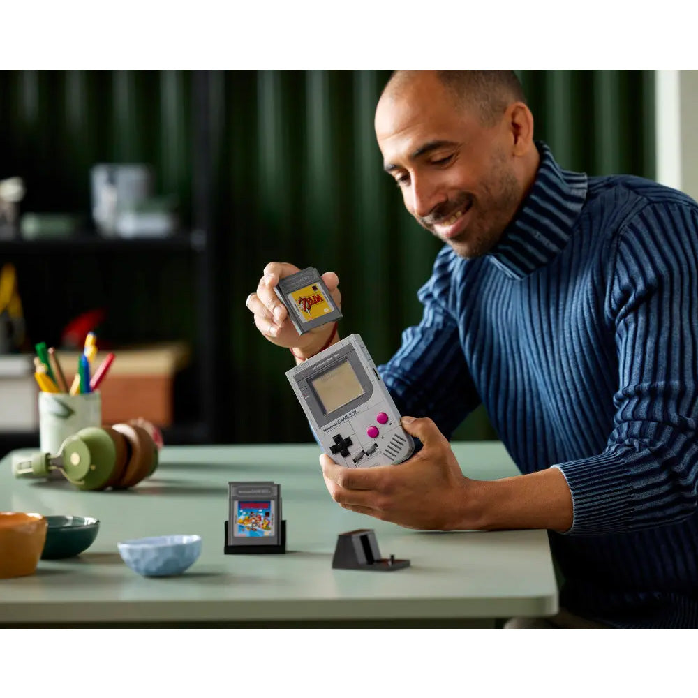 Customise your display – Includes interchangeable, brick-built The Legend of Zelda™: Link's Awakening or Super Mario Land™ Game Boy™ Game Paks and lenticular screens, plus a Nintendo® start screen