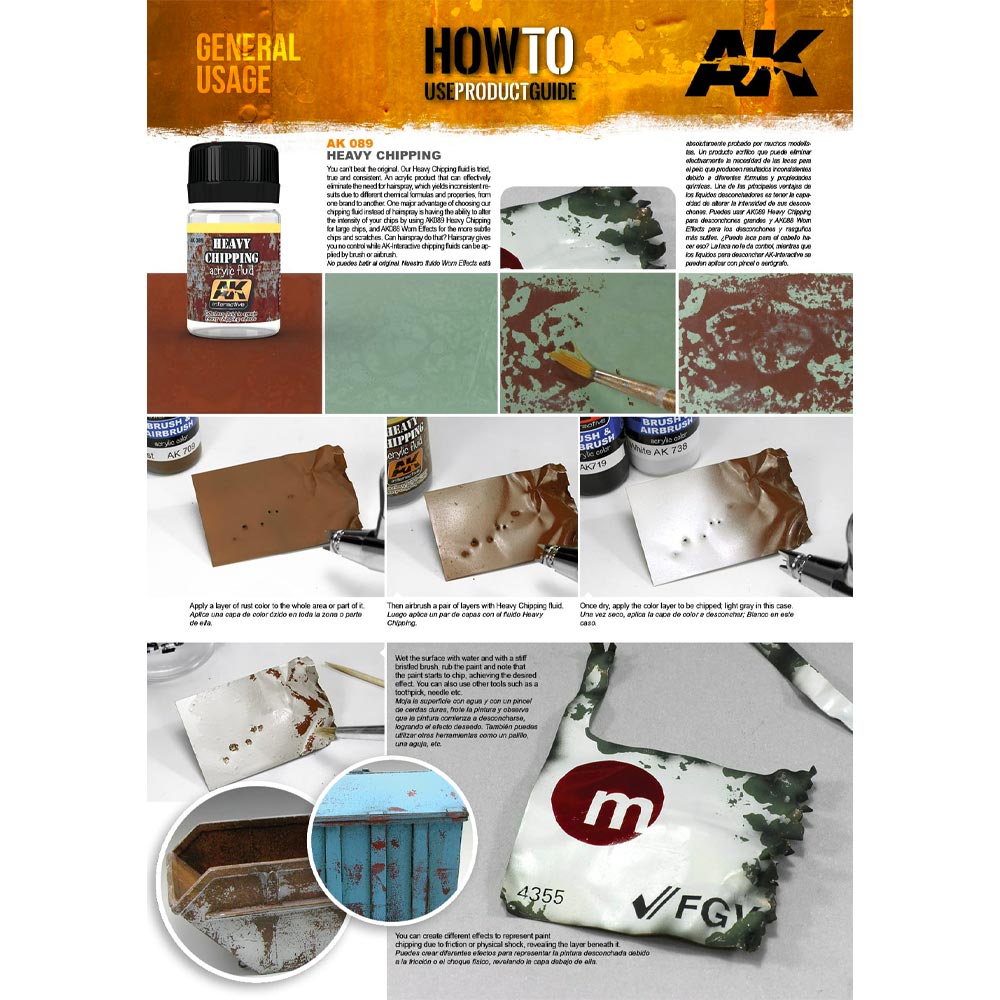 Odorless and effective acrylic product to replace hairspray and to do large chipping effects on our models. First we paint our model with a dark color or the color that we want to see under the chipping. Afterwards, we can apply directly from an airbrush giving a generous coat to our model. Afterwards, using an acrylic paint, we can do the large chipping effects. Dampen the surface using a brush and then do the effects using a sharp tool or the same brush. Don’t gamble with any old lacquer and be confident of the result on your model with this new product.