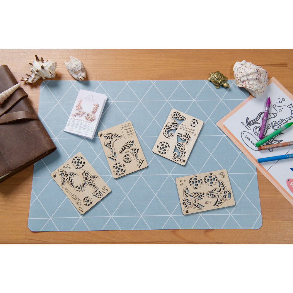 The Pacific Ocean series of U-Fidgets from Ugears features four iconic sea creatures. From denizens of the deep to skimmers of the shallows, these beautiful marine life fidgets remind us we must protect the oceans, use less plastic, stop dumping waste, not let our world destroy theirs. The set is comprised of four small wooden figurines you assemble yourself, each with simple mechanical elements: