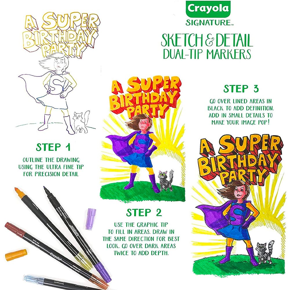 Twice the colors, create double the coloring fun The dual-tip allows for quick switching from bold strokes to ultra- fine lines for intricate details