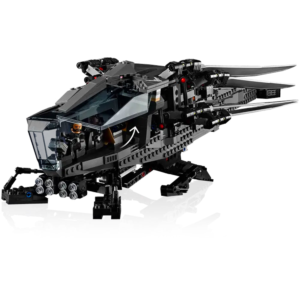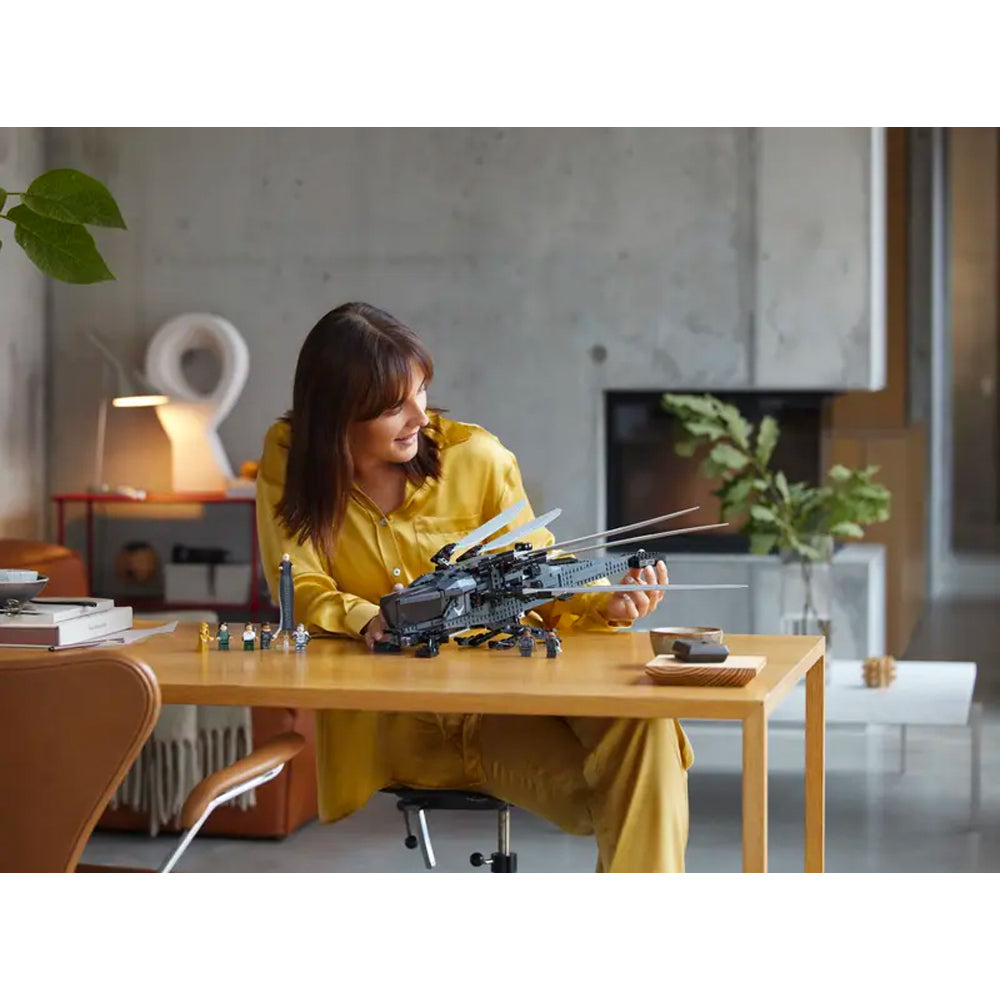 - What’s in the box? – Everything you need to craft a LEGO® replica of the Dune Atreides Royal Ornithopter aircraft with fold-out, flappable wings and deployable landing gear, plus 8 film minifigures