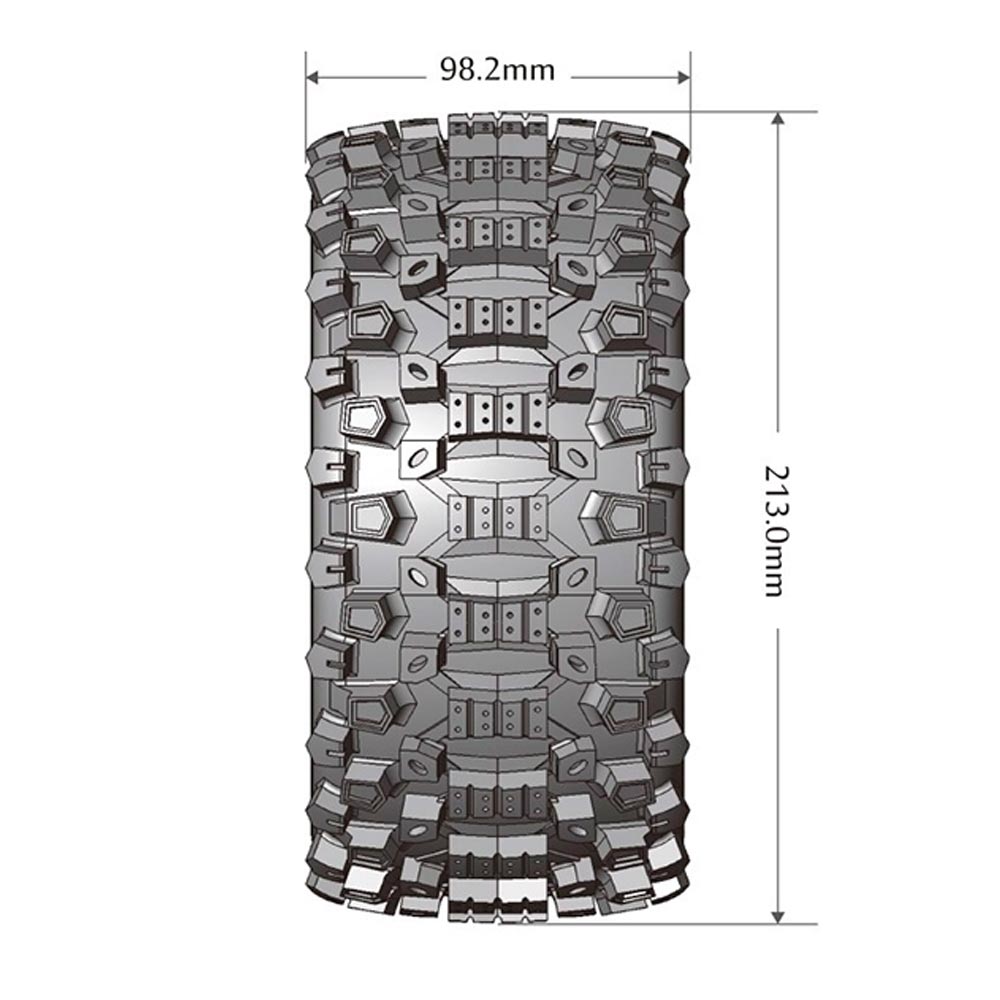 Truck tires for the high performance ARRMA Kraton and Outcast 8S. The new X-UPHILL tire has the new incorporated MFT technology that is engineered to limit tire expansion (normally refered to as "balooning"). They are mounted on a new very sturdy black nylon 7-spoke wheels with ARRMA Kraton 8S Offset and 24 mm hex.