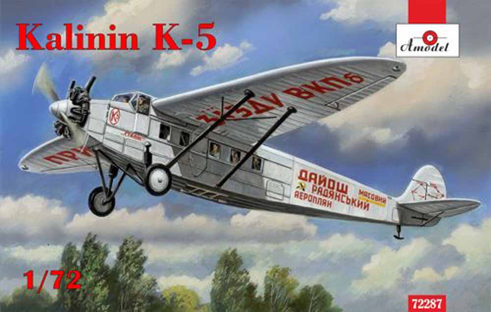 KALININ K5. From Wikipedia, the free encyclopediaK-5Role AirlinerNational origin Soviet UnionManufacturer Kharkov Aviation FactoryDesigner Konstantin Alekseevich KalininFirst flight 18 October 1929Primary user AeroflotNumber built 260The Kalinin K-5 was an airliner produced in the Soviet Union in the 1930s, built in larger quantities than any other Soviet airliner of its time, with some 260 machines constructed. It was a conventional, high-wing, strut-braced monoplane with a fully enclosed cabin and cockpit, and followed the general pattern developed by Kalinin in his earlier designs, albeit on a larger scale.