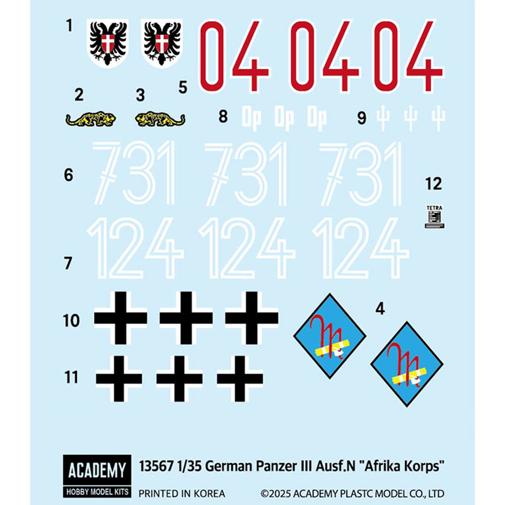 Academy 13567 German Army Panzer III Ausf N "Afrika Korps" Tank 1:35 Model Kit