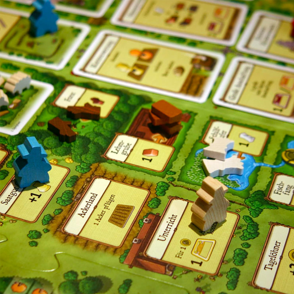 On a turn, you get to take only two actions, one for you and one for the spouse, from all the possibilities you'll find on a farm: collecting clay, wood or stone; building fences; and so on.