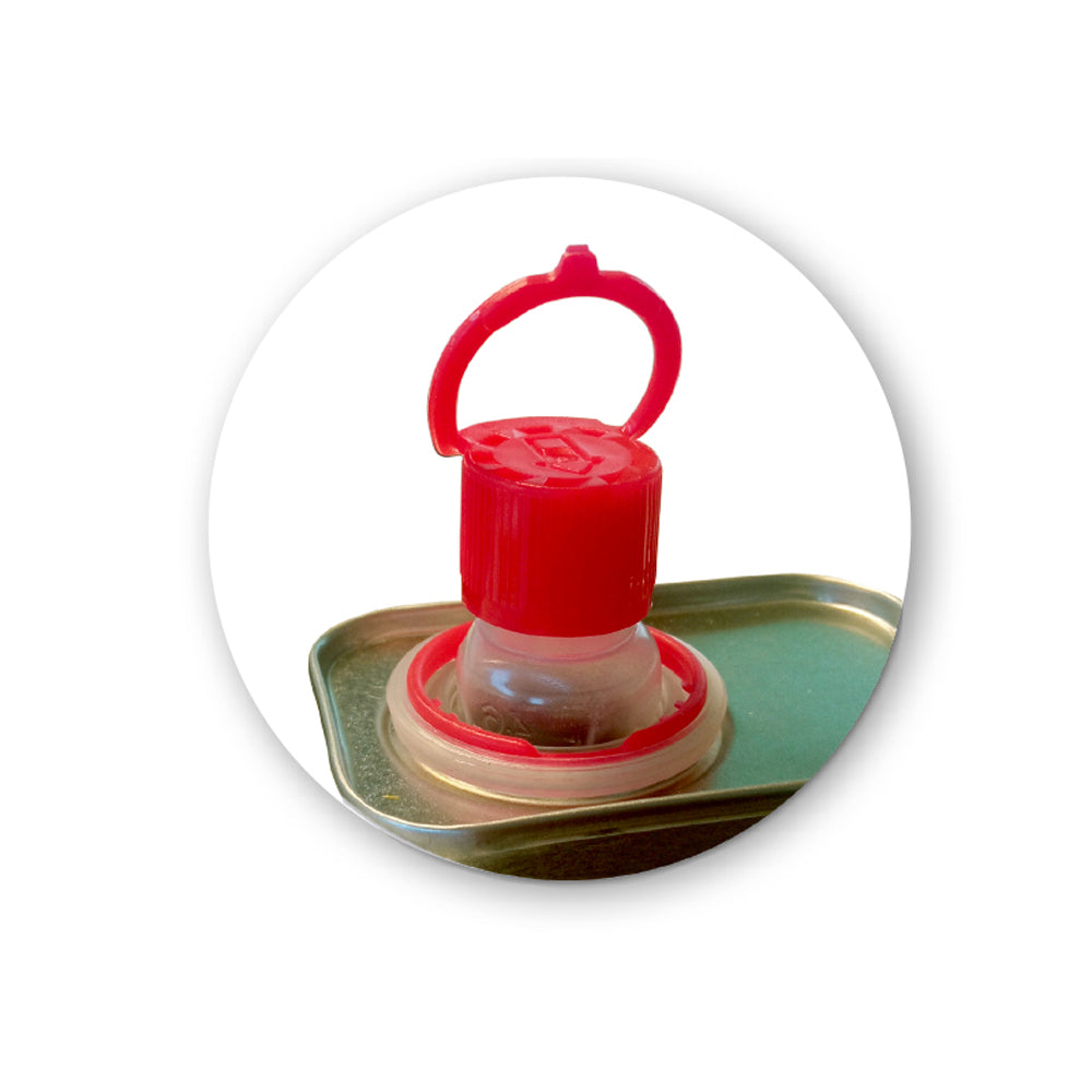 The can features a convenient, easy-open dispensing cap to control the filling of the bottles.