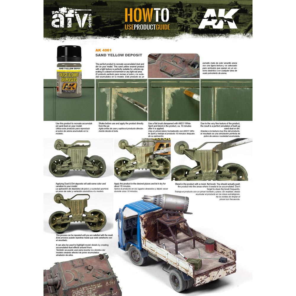 The perfect product to recreate sand effects and accumulations. This Sand Yellow enamel product is perfectly suited for vehicles operating in a desert environment or in any sandy soil area.