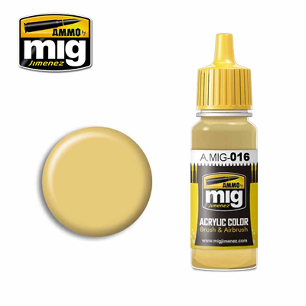 DAK camouflage base color introduced in March 1942. Combined with RAL 7027 covering 2/3 of each vehicle. Water soluble and removable, this color was used for camouflage on canvas covers of vehicles. Acrylic - Authentic color formulated for maximum brush & airbrush performance with the Scale Reduction Effect that allow us to obtain the correct colors in model kits. 17ml jar. Water soluble, odorless, and non-toxic. Shake thoroughly before each use. We recommend A.MIG-2000 Acrylic Thinner for thinning. Dries completely in 24 hours.