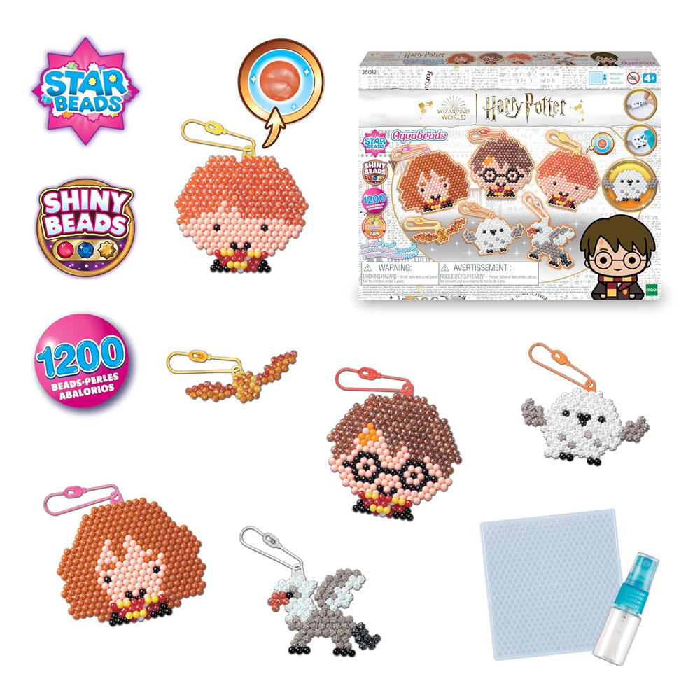Template designs include Harry Potter, Ron Weasley, Hermione Granger, Hedwig, Hippogriff, and Golden Snitch . Bonus design templates included to make 4 kinds of house emplems which can be created with Aquabeads refills sold separately.