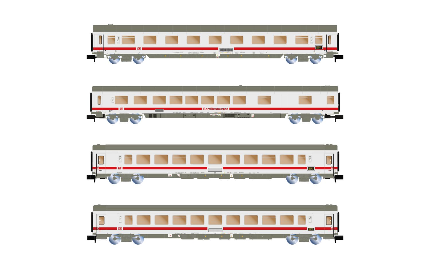 Set of 1:160 Scale coaches decorated in DBAG livery. These models feature lots of expertly applied details as based on the prototype, a high level of body detail and excellent running characteristics.