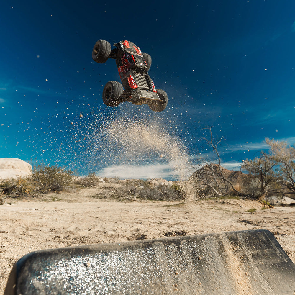 Its compact footprint hides a full arsenal of ARRMA strength. The mini chassis uses reinforced components and heavy-duty bumpers for the kind of durability that lets you go wild without thinking twice. The aggressive body comes in bold factory paint with a quick release clipless system for fast pit stops and even faster bragging rights.