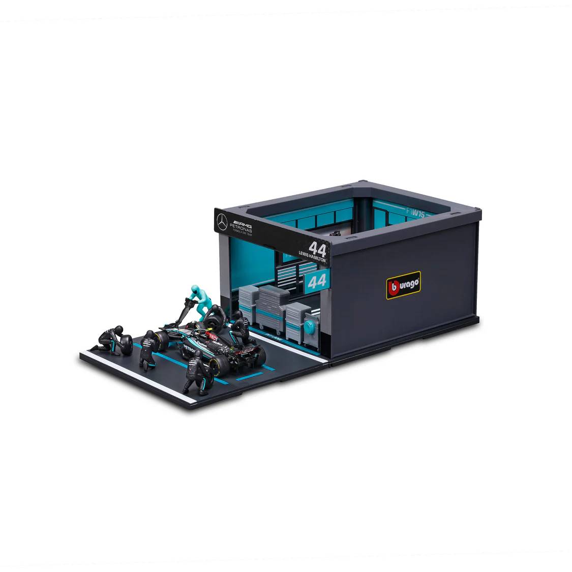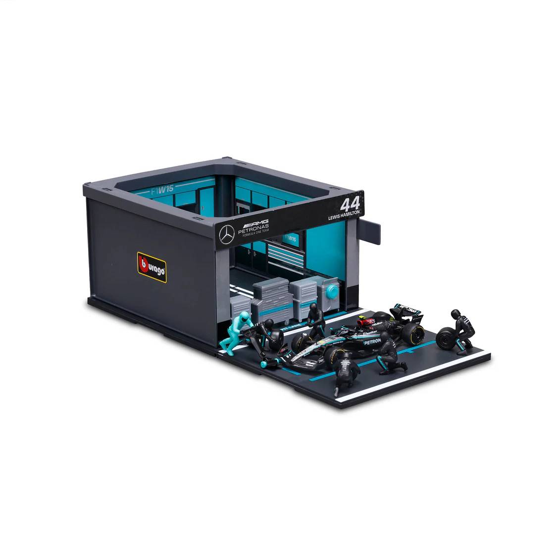 Experience the excitement of Formula 1 with this 1:43 scale Mercedes AMG W15 Diorama Set, featuring the 2024 race car and its dedicated pit crew mid–pit stop. This detailed scene captures the precision, teamwork, and high-speed action that define Mercedes F1 performance, making it a standout collectible for fans of Lewis Hamilton and motorsport enthusiasts.