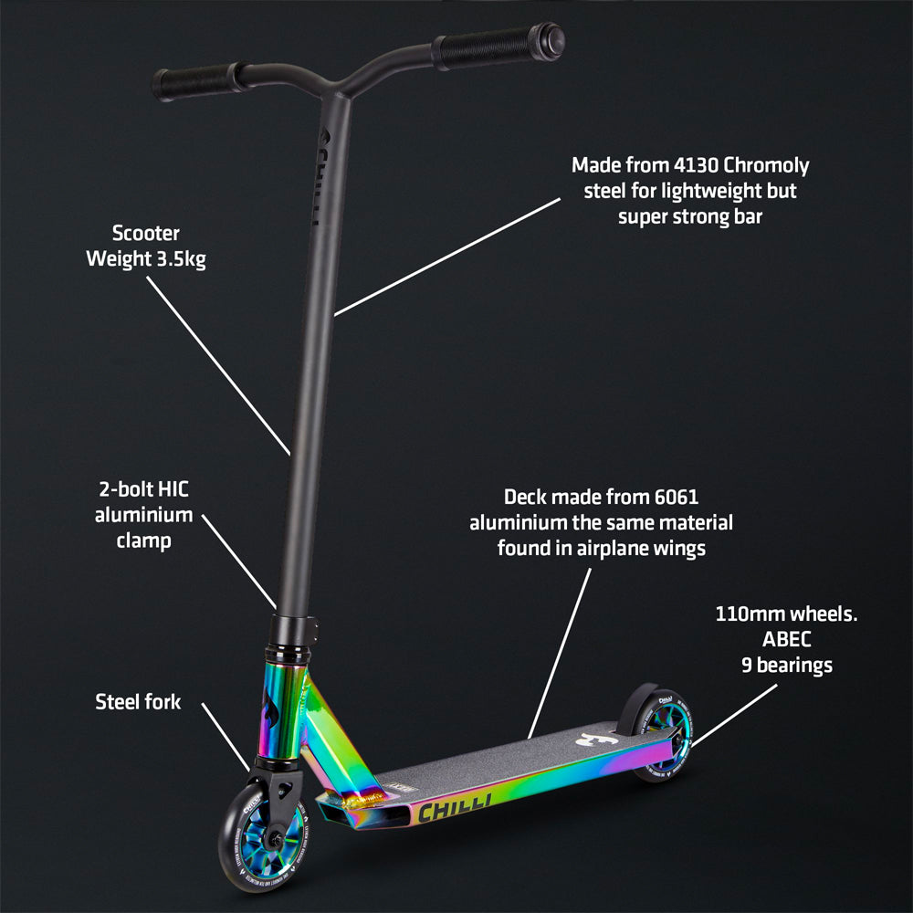 The Chilli Base offers beginner riders to chance to try out their first stunt scooter without compromising on safety or style.