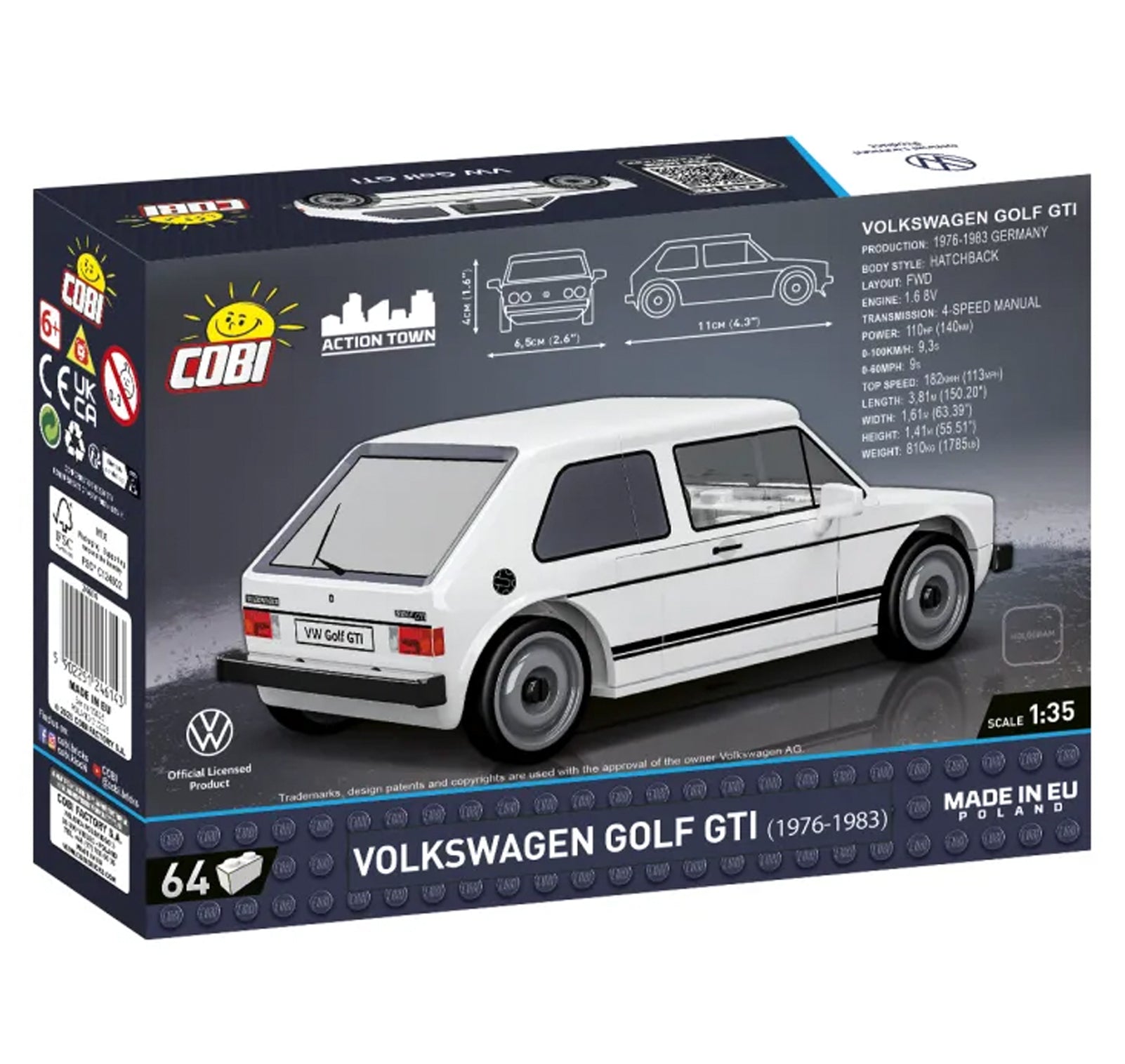 The COBI Volkswagen Golf GTI set is a must-have for every fan of motoring and building with blocks. Create a model of this famous machine that changed the world of sports cars forever and develop your collection of iconic cars from COBI.