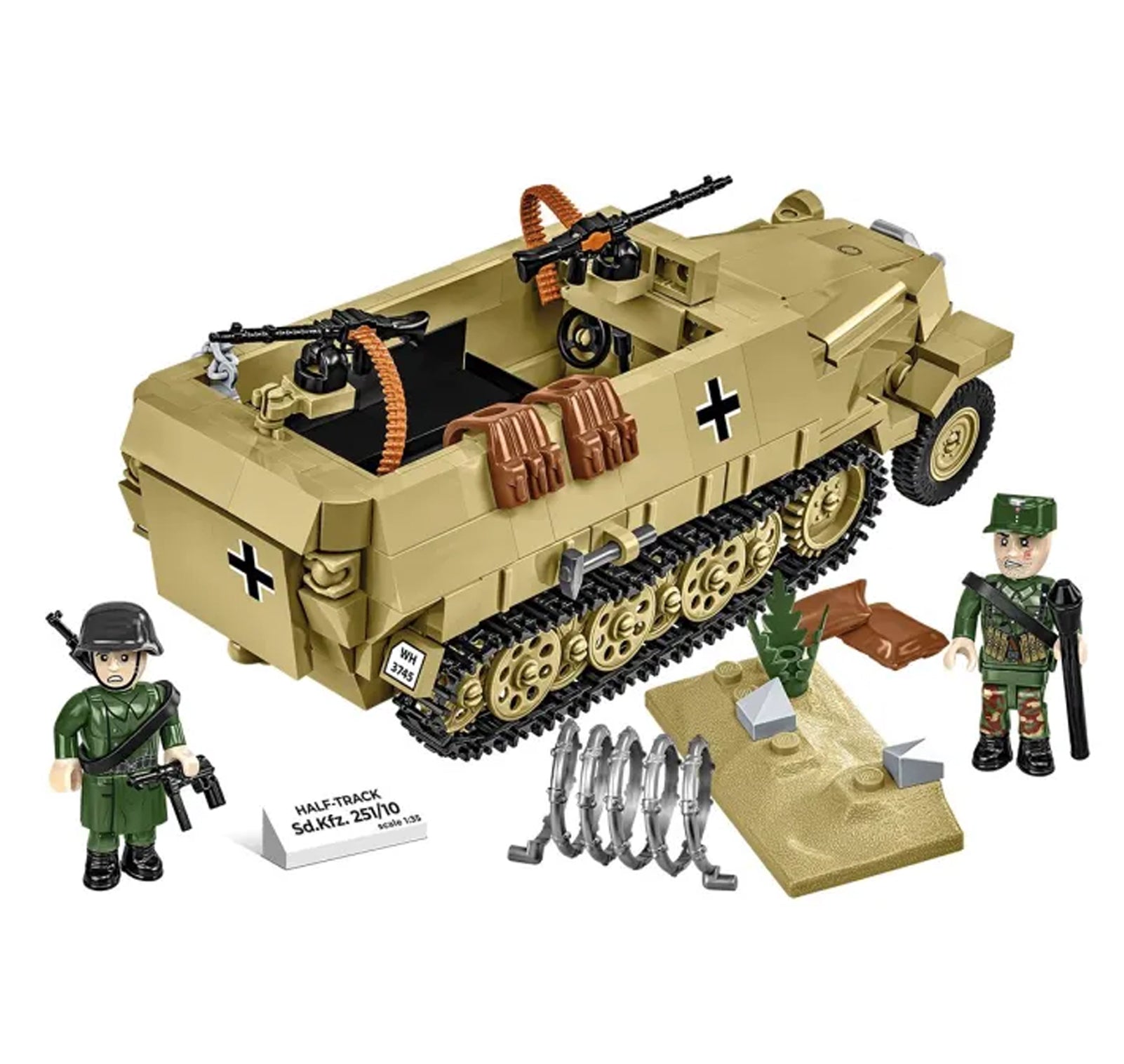 The Sd.Kfz.251 was the basic half-track armored personnel carrier of the German army during World War II. Production of various versions has been ongoing since 1939. Other combat vehicles were also built on its basis. It was produced in four production models, from A to D, and 23 basic and many field versions, of which the standard and most numerous was the Sd.Kfz.251/1 armored personnel carrier. The armored hull was made of welded armor plates. The front part ended behind the driver's station. It protected the driver, commander and engine. The open-topped combat compartment was to accommodate 10 soldiers. The rear, large, outward-opening doors allowed access to the interior.