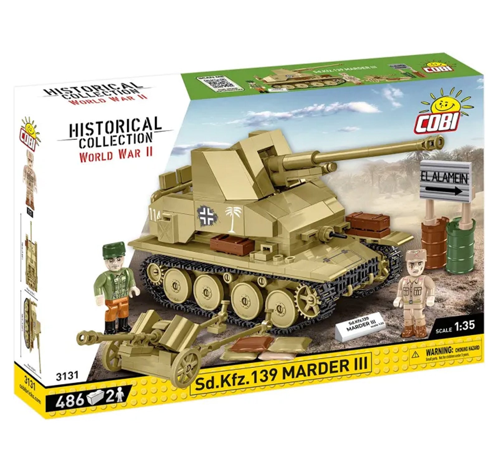The set also includes a road sign inspired by historical photos with the name of the town of El Alemein, in the vicinity of which two key battles of the campaign in Africa took place. The figures represent a German mechanic and an artilleryman. The set was developed with attention to detail and is also a great extension of the popular Historical Collection! Fans of history and blocks will find something for themselves here!