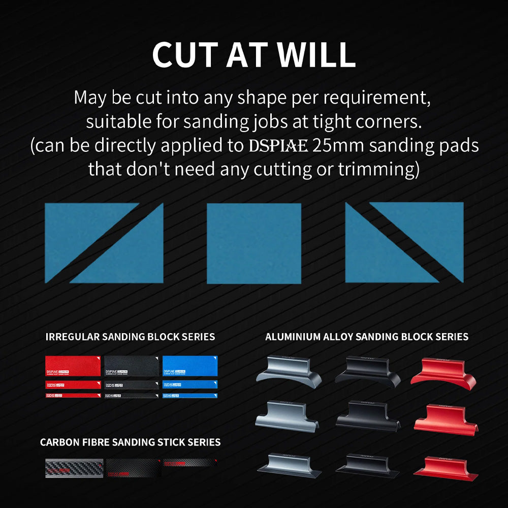 Sized perfectly to fit DSPIAE sanding sliders and tools, removing the need for trimming.
