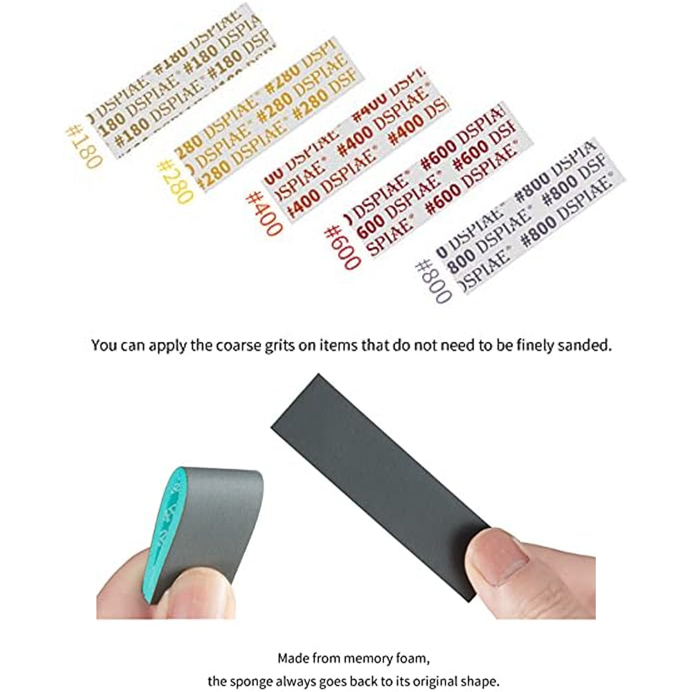 The sanding block is made from EVA material that is soft and flexible, perfect for sanding curved edges. The grits are color coded, making it easy to distinguish. Grits are labeled clearly at the back, allowing users to choose their tools without hassle.