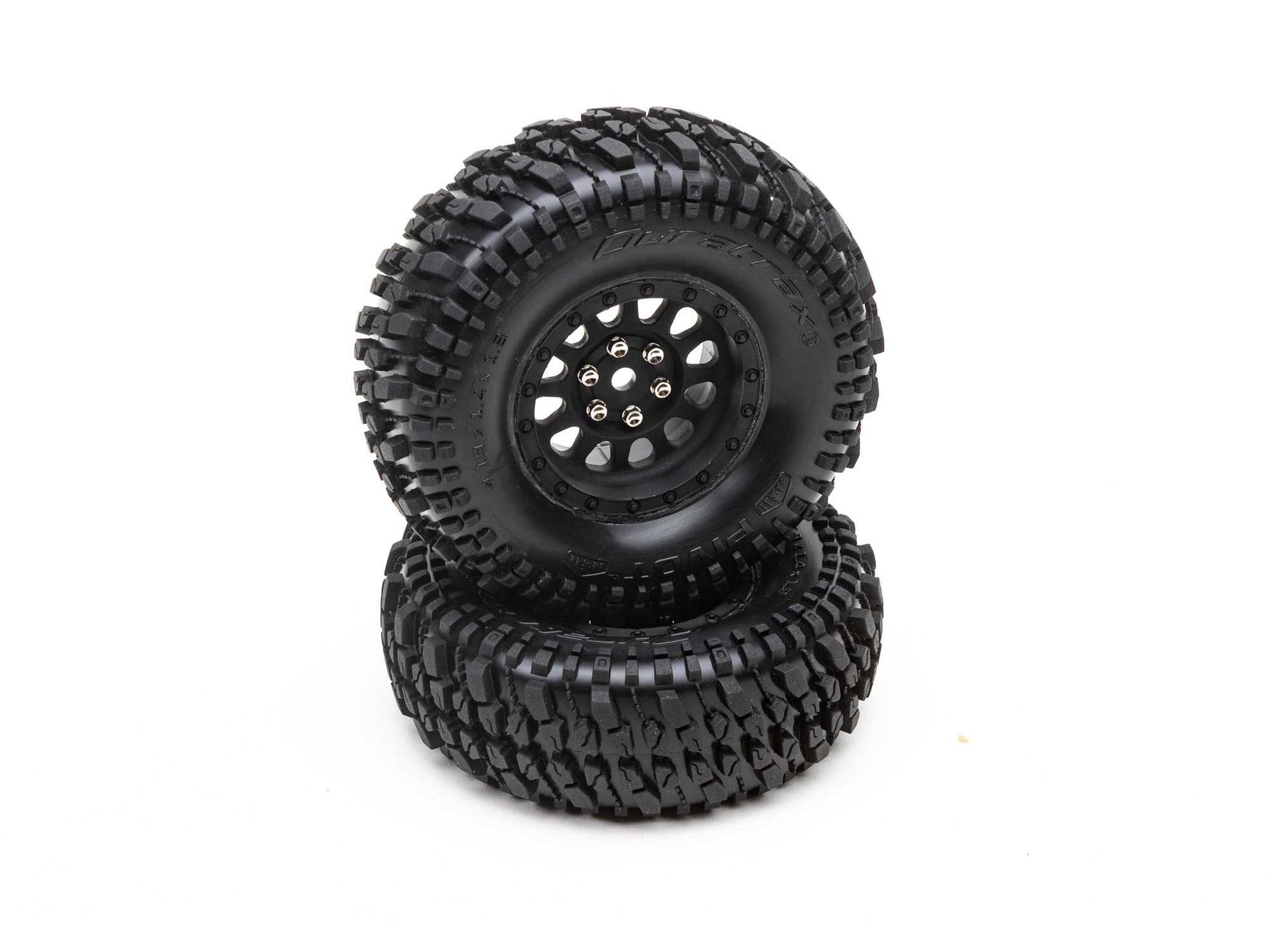 These Duratrax¬ PIVOT front and rear tires are Class 1 (4.19" outer diameter) size for maximum scale appearance, with a 1.9" inner tire/outer wheel diameter. Made from super-soft C3 compound rubber with an aggressive tread that bites into loose or muddy surfaces, these tires provide exceptional gripping power for climbing over slippery rocks and getting past the toughest obstacles. They include foam inserts and arrive factory-mounted to 12mm hex wheels that are molded from a durable black composite plastic. Sold in pairs.