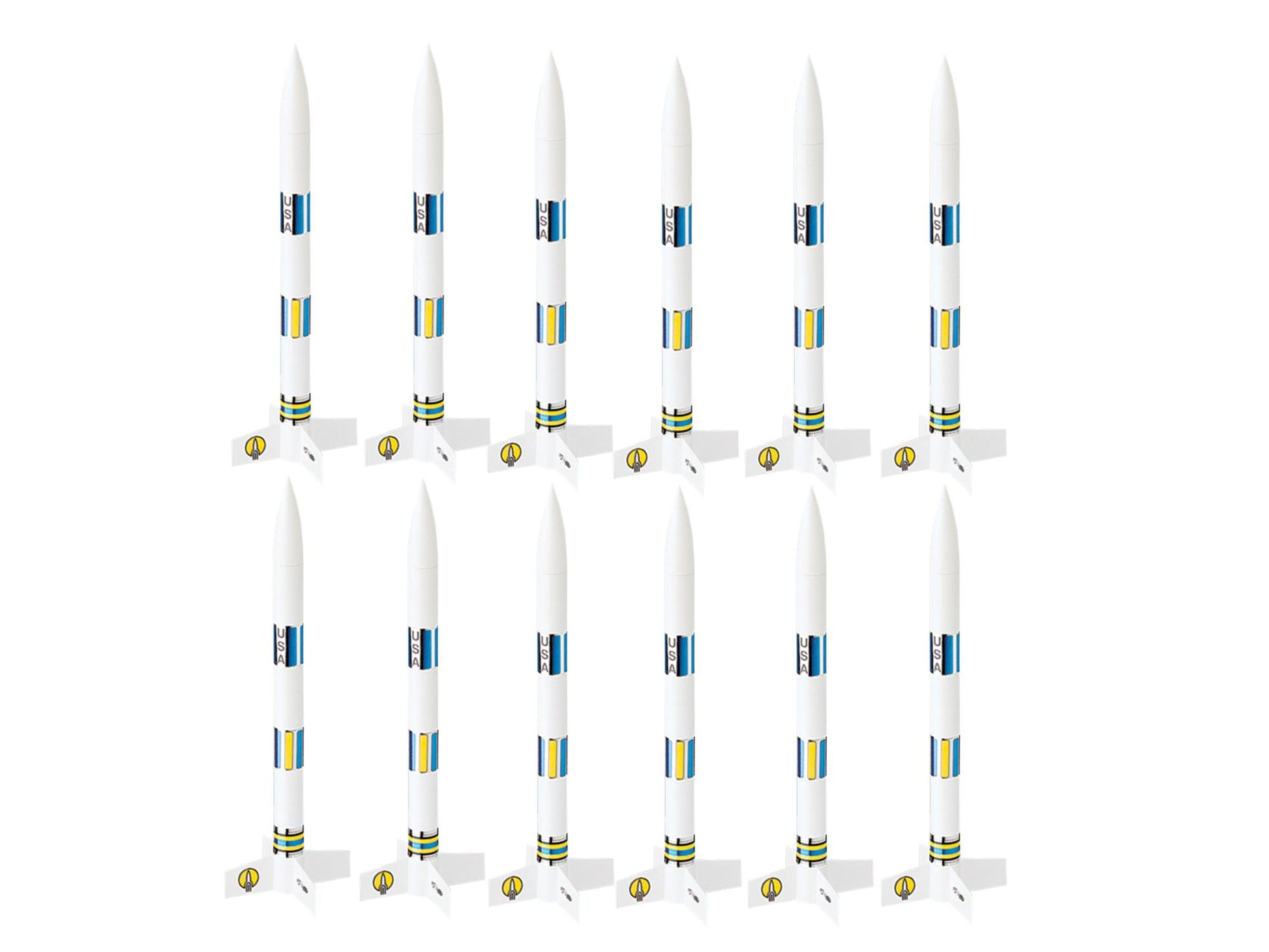 Generic E2X is 381mm tall once complete and can launch to an altitude of 1,100 feet using Estes standard rocket motors. Recovery of your unique creation is by an included 30.5cm preassembled parachute.