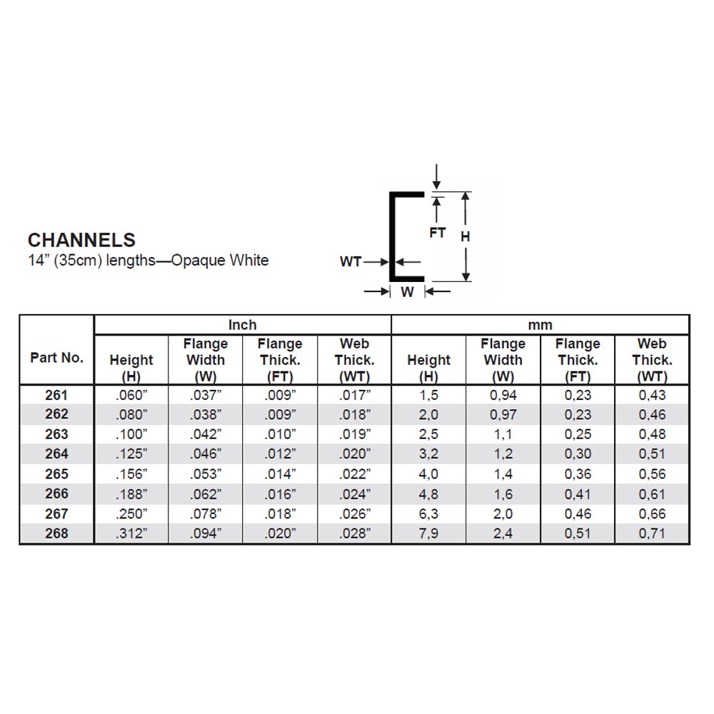 Evergreen 262 - 0.08"/2.0mm Polystyrene Channels 14"/35cm 4 pcs