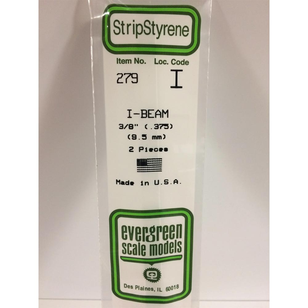 Evergreen 279 - 0.375"/9.5mm Polystyrene I-Beams 14"/35cm 2 pcs