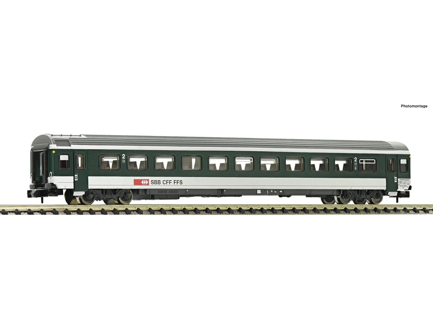 Model1:160 Scale model of a 2nd Class coach decorated in SBB livery. This model features lots of expertly applied details as based on the prototype, a high level of body detail and excellent running characteristics.